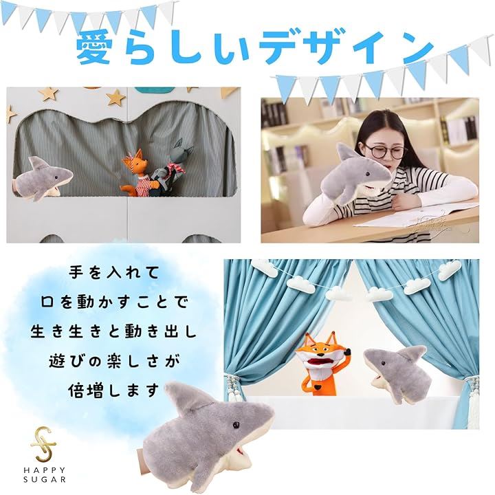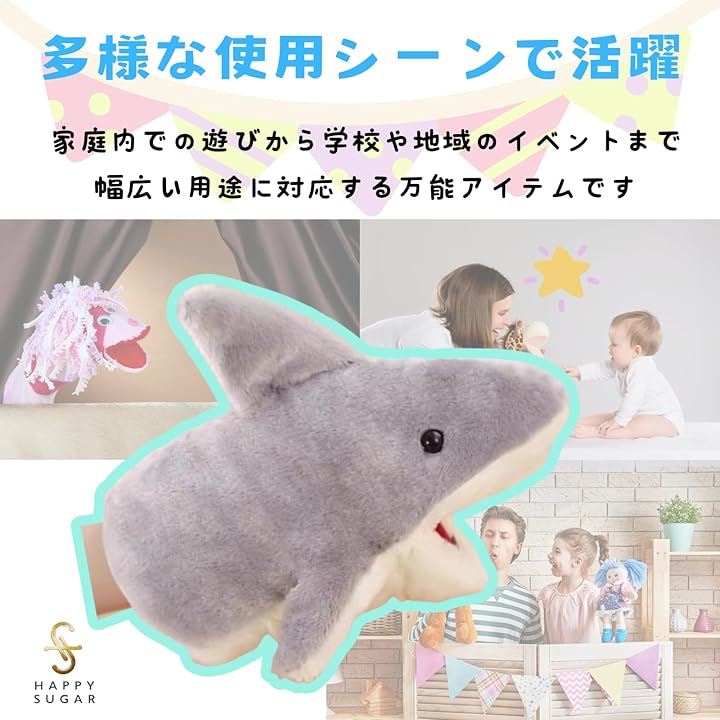 サメ 人形 ハンド ぬいぐるみ おもちゃ サメグッズ 口が動く 腹話術 人形劇 子供 ペット