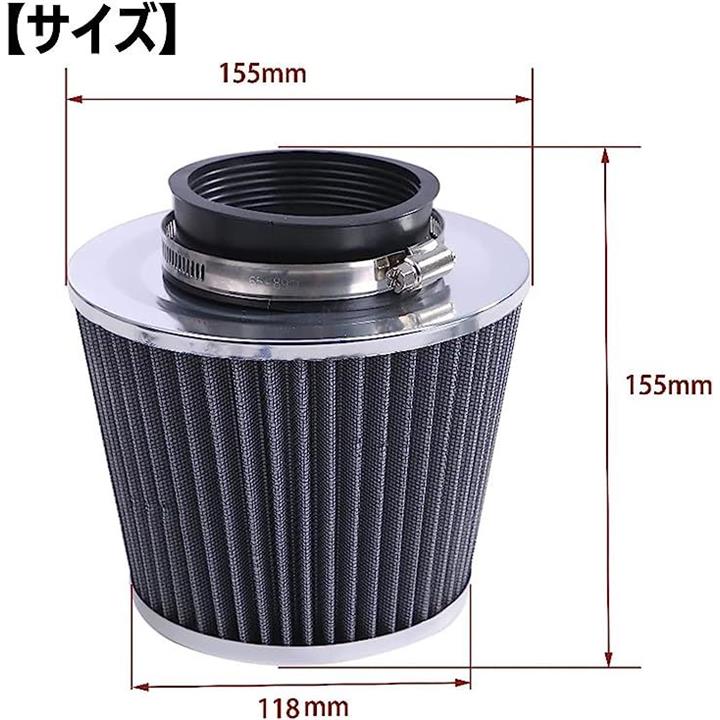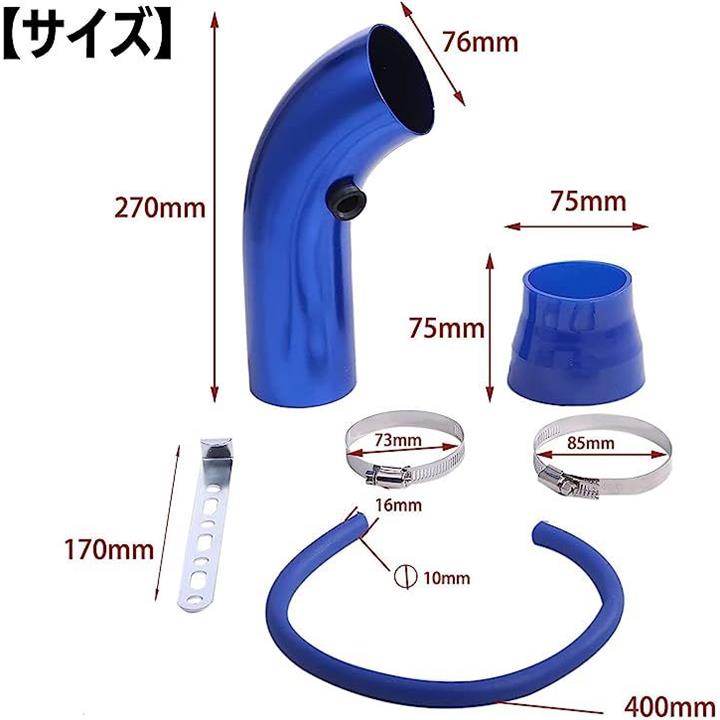 互換品エアフィルター 銀色 76mm 口径 吸気管 クリーナー 高流量高冷風 自動車用 アルミ製エアインテークパイプ 汎用