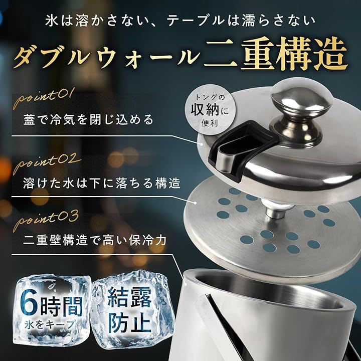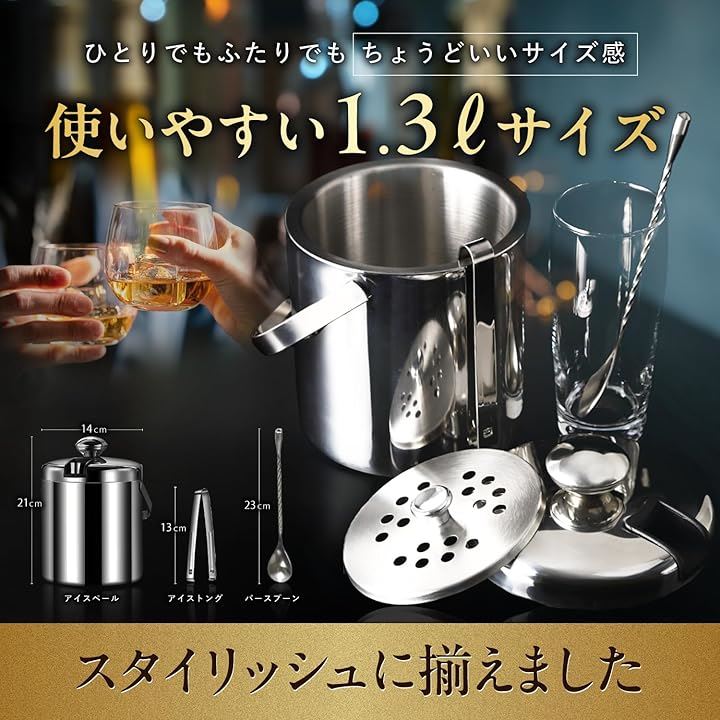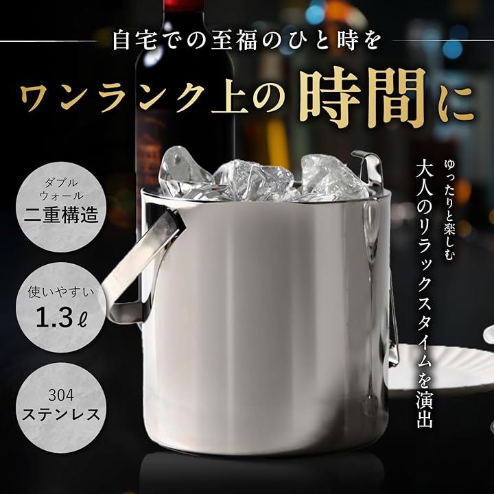 アイスペール 氷入れ アイスボックス 容器 ステンレス製 1.3Lサイズ