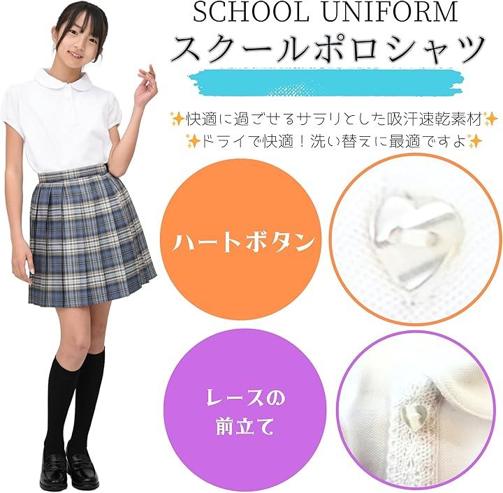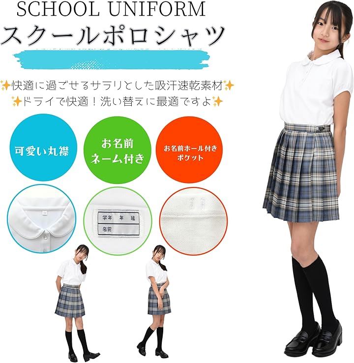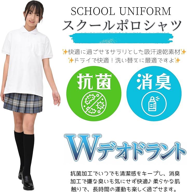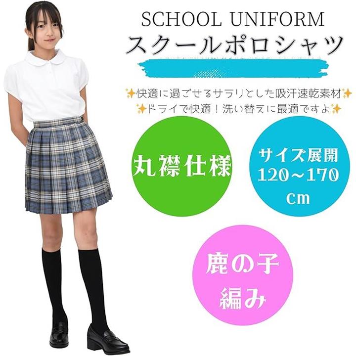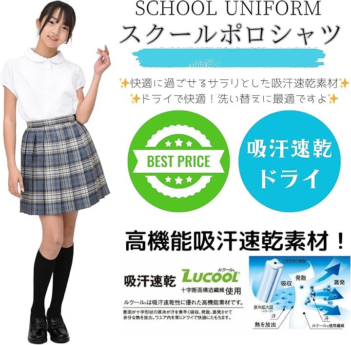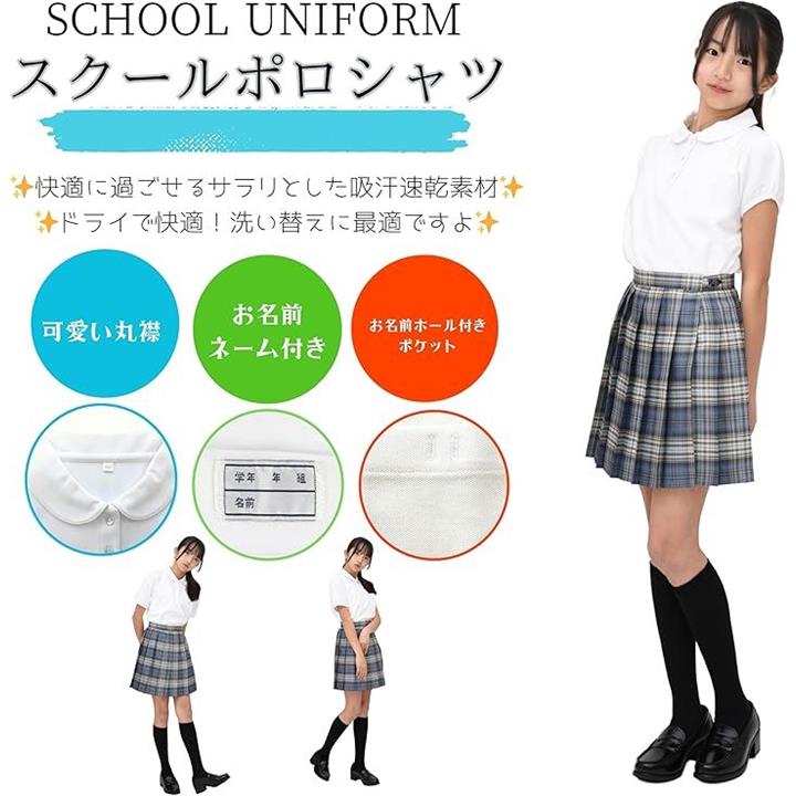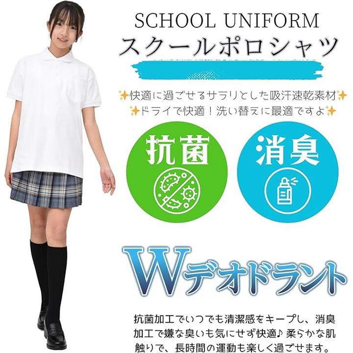 スクールポロシャツ 半袖 女児 女の子 ガールズ 吸汗速乾《ドライで快適》抗菌消臭《清潔感キープ》高機能Locool素材使用 小学生 中学生 高校生 制服 冠婚葬祭 シワになりにくい 洗濯に強い オールシーズン対応