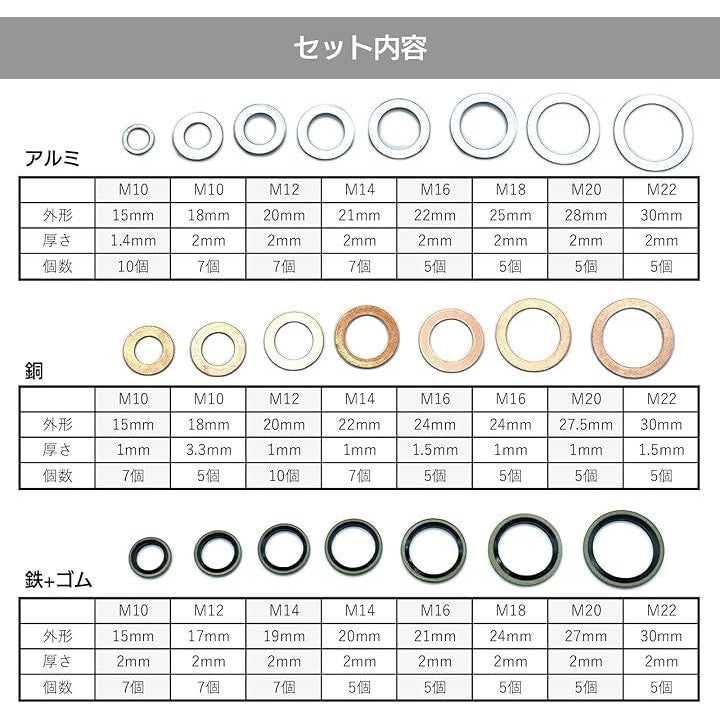 モデルノ ラ テール ワッシャー ドレンワッシャー アルミ 銅 ガスケット 耐熱 耐油 汎用 車 セット ケース付き オイル交換 70-365-AW