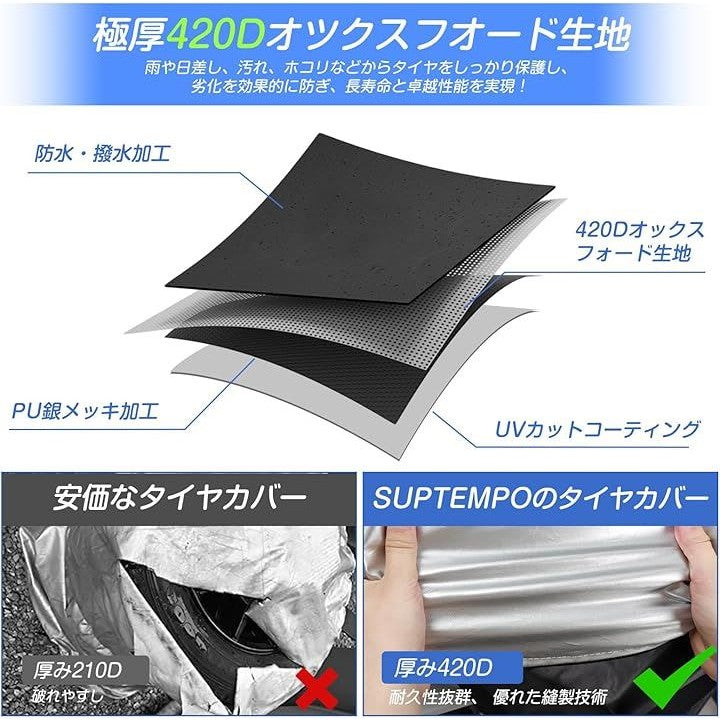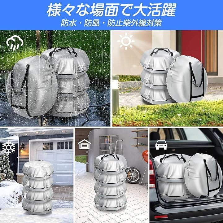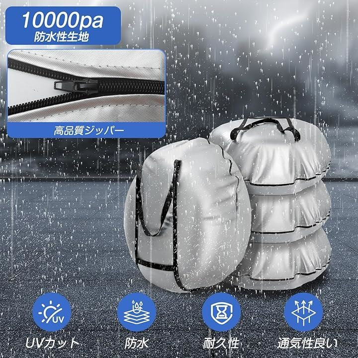 タイヤカバー 屋外 防水 420D タイヤ収納 厚手 ハンドル付き 劣化 UVカット 汚れ防止 防犯 耐久 雨雪対応 全季節対応 タイヤ保管カバー 軽自動車 収納袋付き