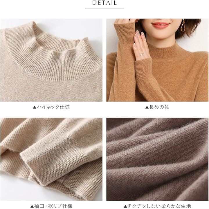 [ウェアビー] ハイネック ニットトップス セーター 長袖 無地 カジュアル 秋冬 きれいめ シンプル 伸縮性 レディース インナー 厚手 リブニット タートルネック モックネック ミドルネック チクチクしない ぽかぽか 暖かい カットソー 起毛 フェミニン |