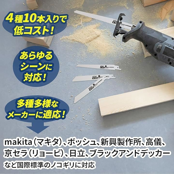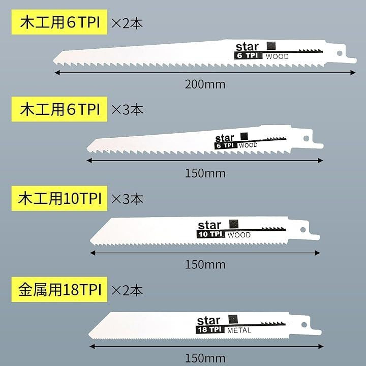 レシプロソー替刃 10本入 セーバーソーブレード のこぎり替え刃 木工用 金属切断 汎用レシプロソーのブレードセット