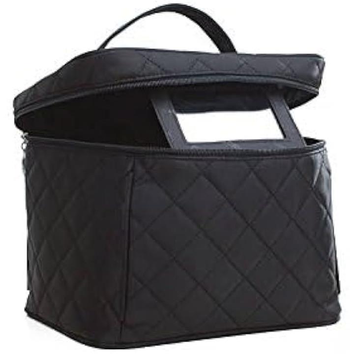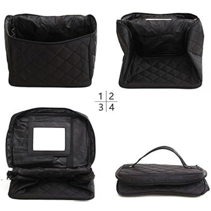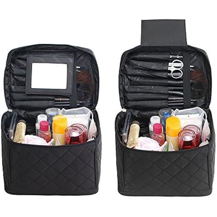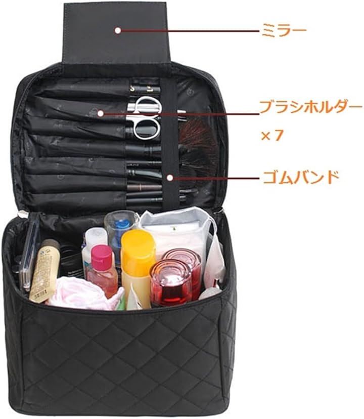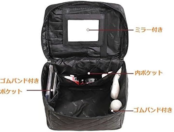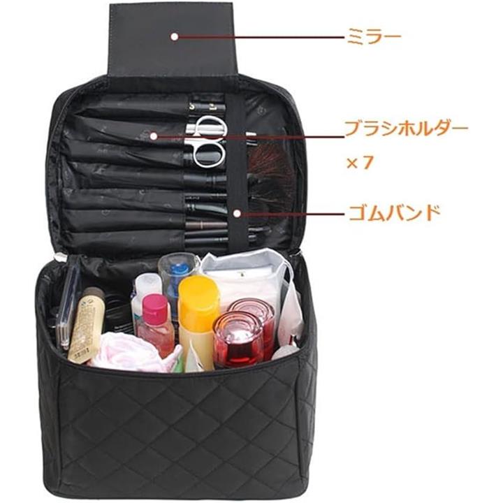 コスメバッグ メイクポーチ 化粧ポーチ バニティケース トラベル 鏡付き ドレッサー 収納ボックス 化粧品 雑貨 小物入れ 出張用バック 超軽量 機能的 大容量 4色 ブラック