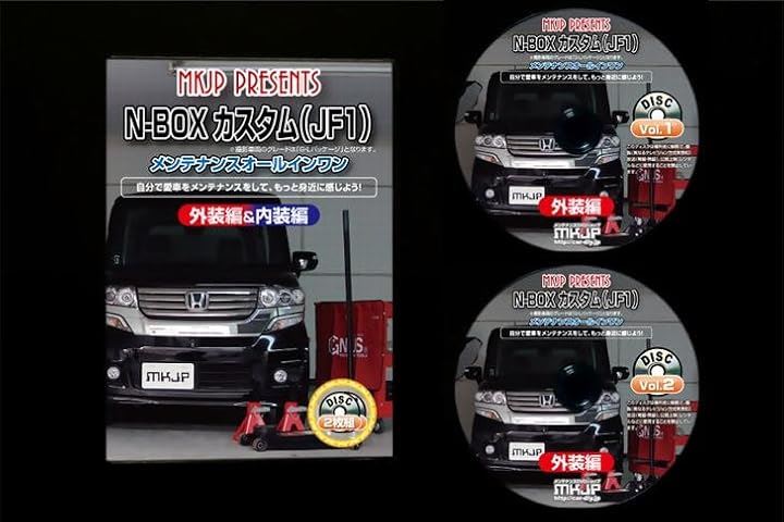 NBOX カスタム JF1 DVD収録内容:[ディスク1] 1. ジャッキアップ&ダウン方法 2. エンジンオイル交換方法 3. フロントグリル脱着方法 4. フロントバンパー脱着方法 5. リアバンパー脱着方法 6. ヘッドライトユニット脱着方法 7. テールライトユニット脱着方法 8. マフラー脱着方法 9. ヘッドライトランプ(ロー)脱着方法 10. ヘッドライトランプ(ハイ)脱着方法 11. フロントポジションランプ脱着方法 12. フロントウィンカーランプ脱着方法 13. フロントフォグランプ脱着方法 14. リアランプ類脱着方法 15. ワイパー(ゴム・ブレード)脱着方法 16. エアクリフィルター脱着方法 17. ホーン脱着方法 18. ライセンスランプ脱着方法 19. サイドミラー脱着方法 20. ハイマウントストップランプ脱着方法 21. プラグ脱着方法 22. バッテリーマイナス端子絶縁方法 23. バッテリー脱着方法