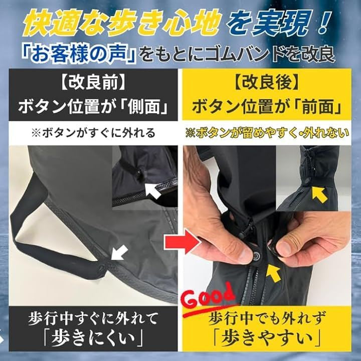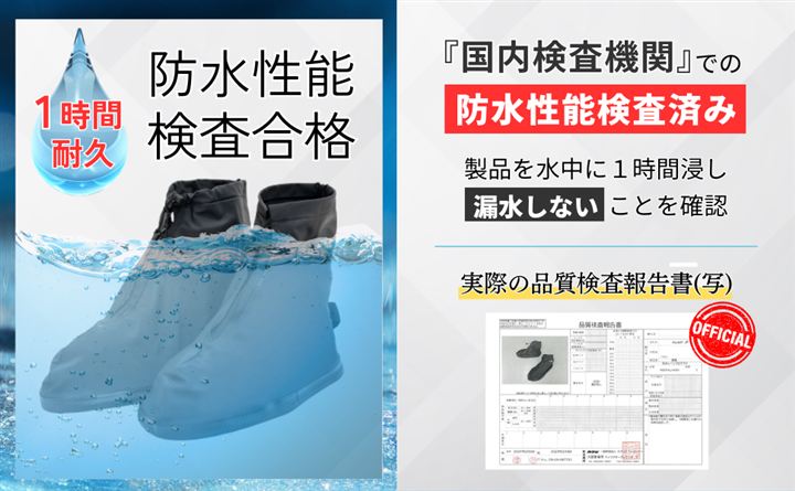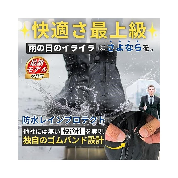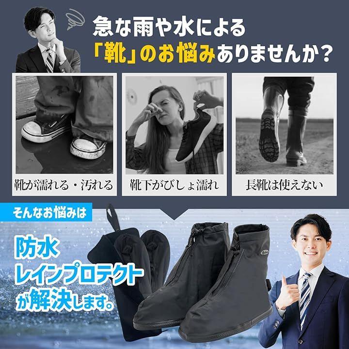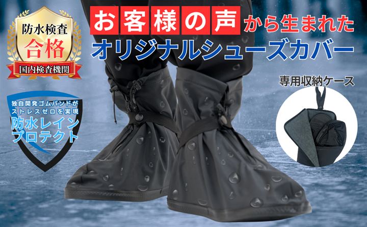 いつでも快適に歩ける防水・撥水仕様 で 雨や水たまりも気にせず大切な靴を水や泥からしっかり守ります。