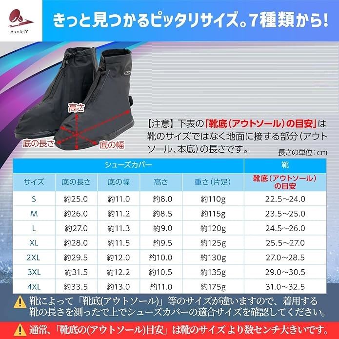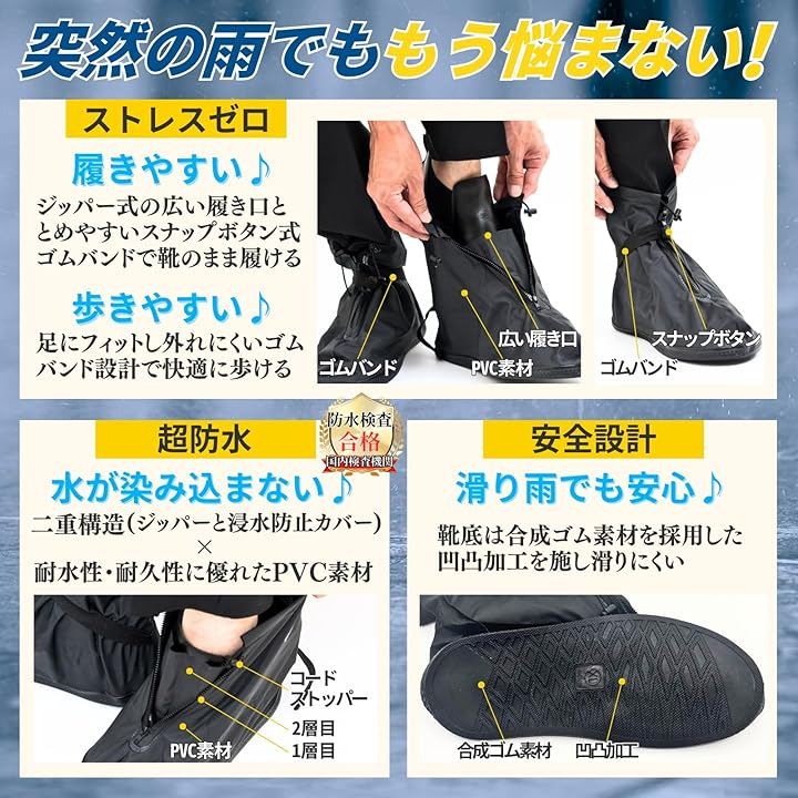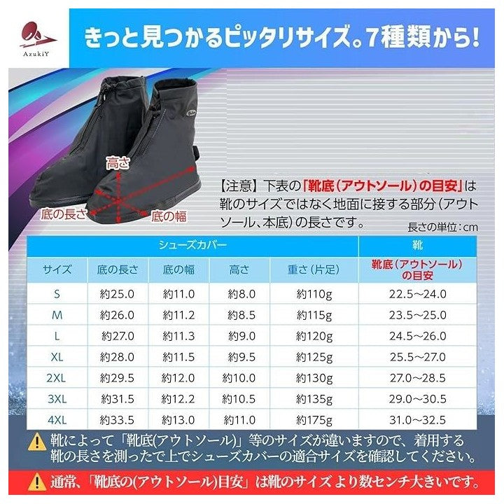 [AzukiY] シューズカバー 国内防水検査合格 靴カバー 防水 レインシューズカバー 雨 雪 防水シューズカバー ブーツカバー 使い捨て靴カバー 防水カバー シューズ 通勤 通学 自転車 バイク アウトドア キャンプ 収納ケース PVC 軽量 梅雨 |