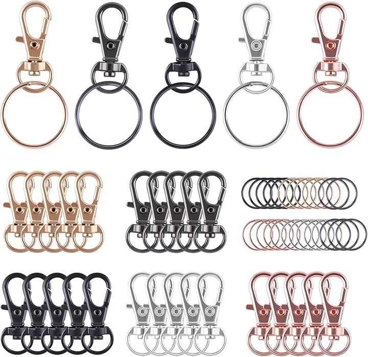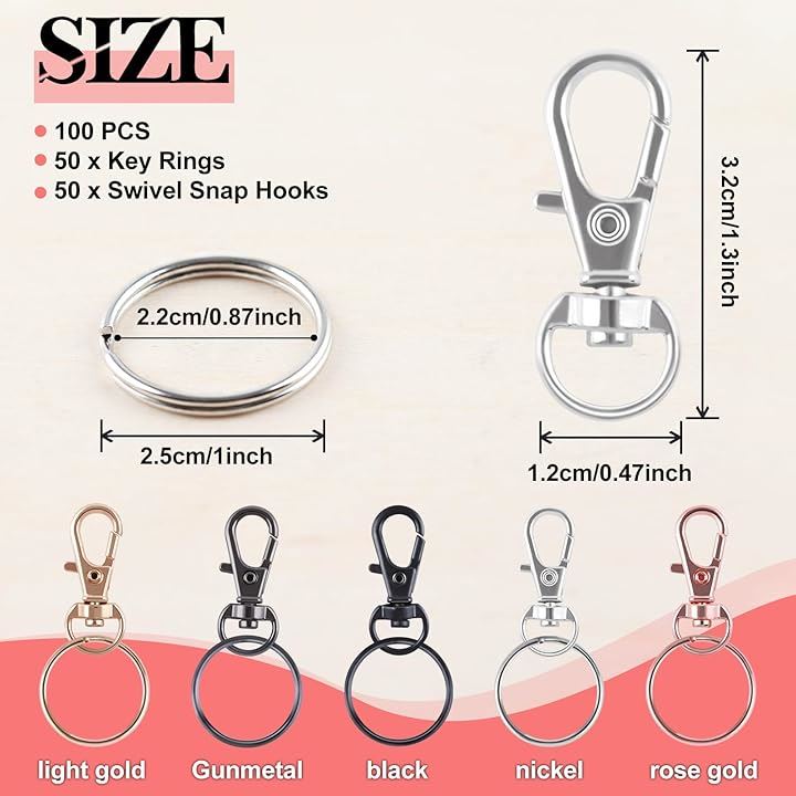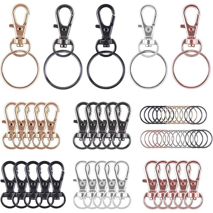 キーホルダー ナスカン 回転 二重リング 回転ナスカン 回転フック スナップフック 手作り 手芸用品 ハンドメイド金具 レバーナスカン ワンタッチキーホルダー パーツ DIY用 50個32mmナスカン+50個25mmキーリング