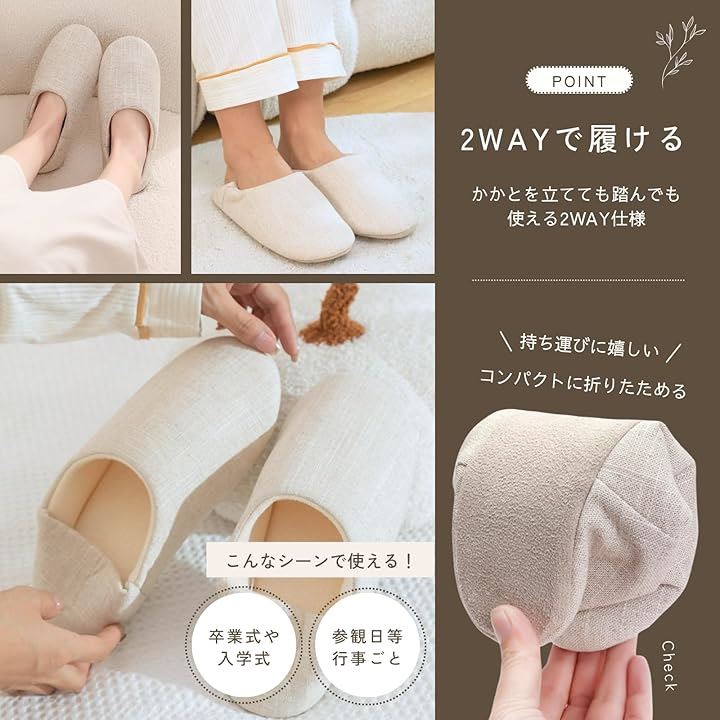 スリッパ かかと付き レディース 2WAY 室内履き ルームシューズ 静音 軽量 洗える 携帯スリッパ かかとあり