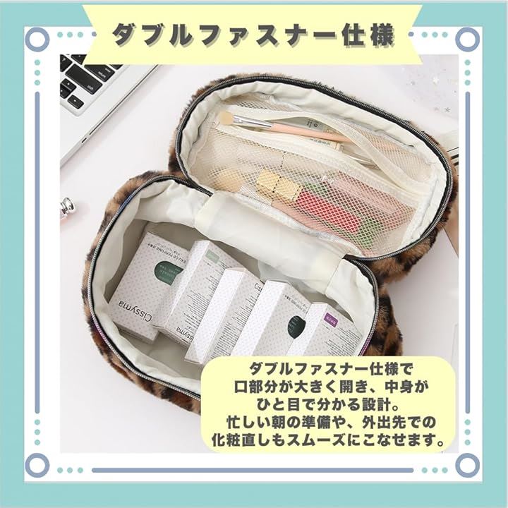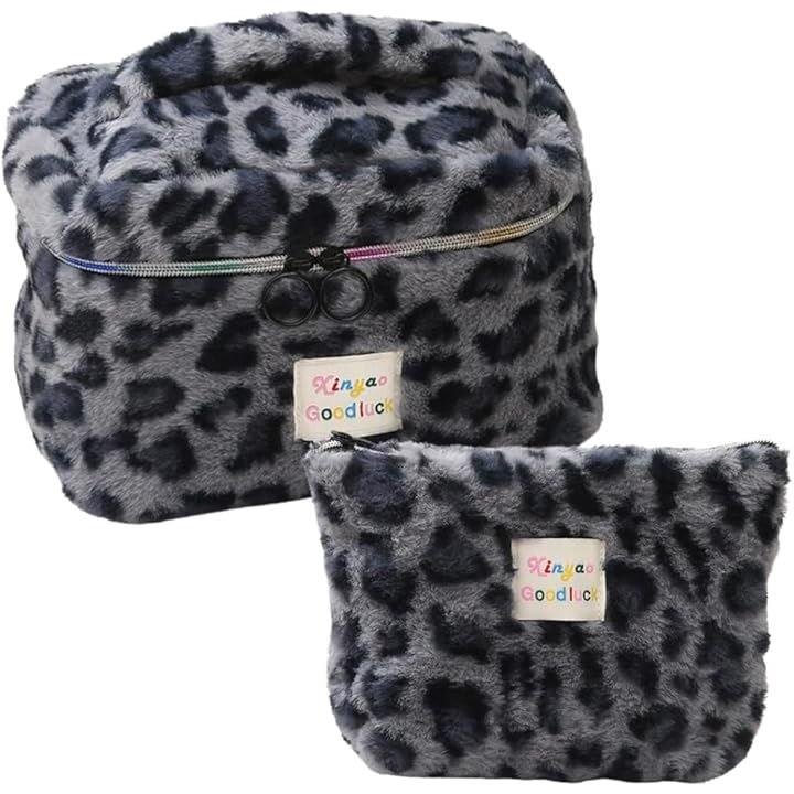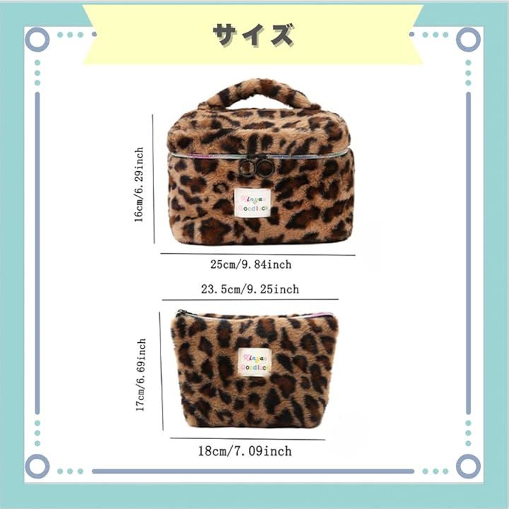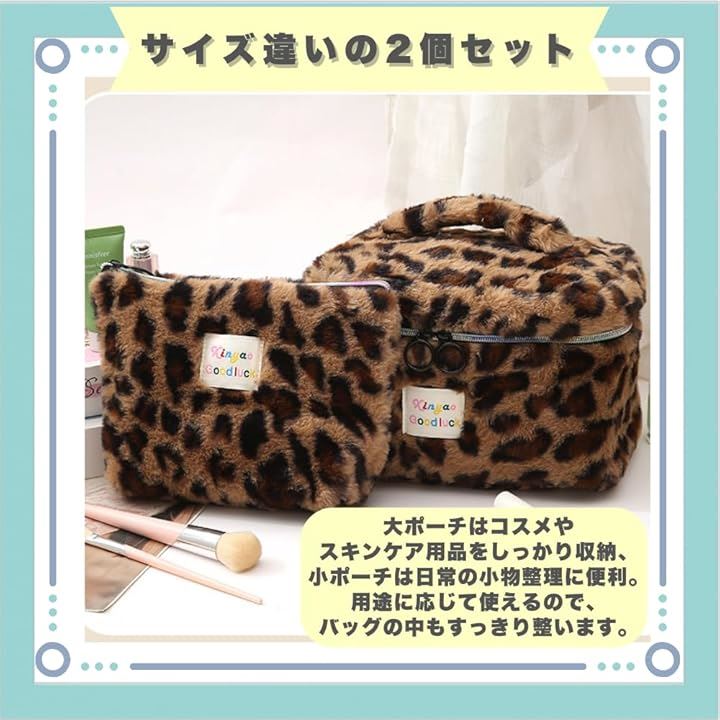 化粧ポーチ メイクポーチ コスメポーチ ヒョウ柄 大容量 おしゃれ 2点セット