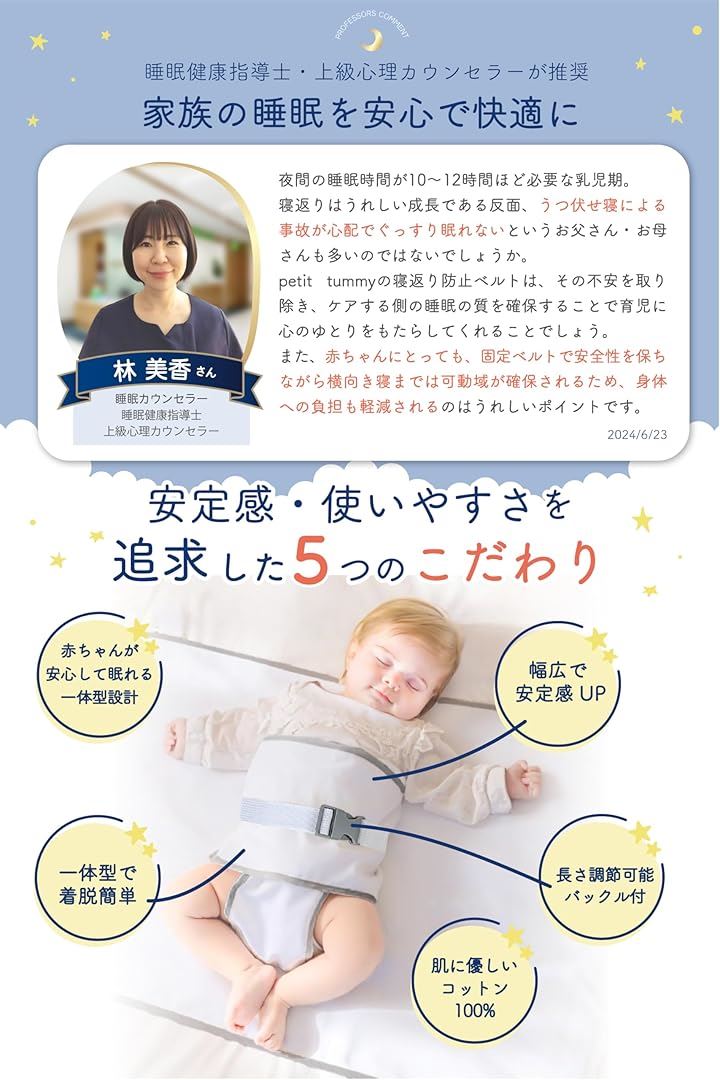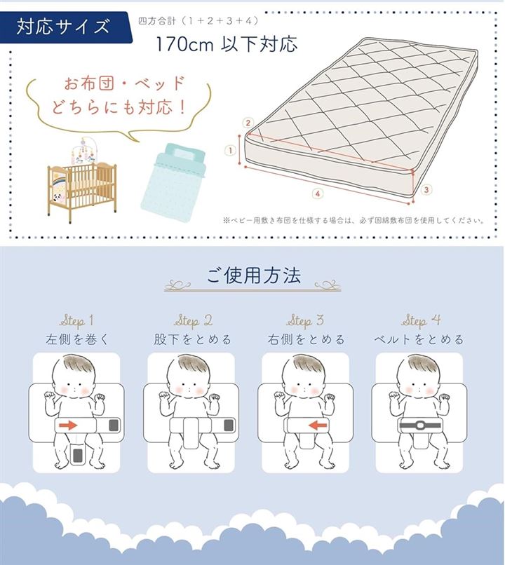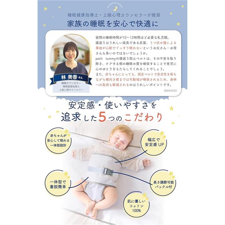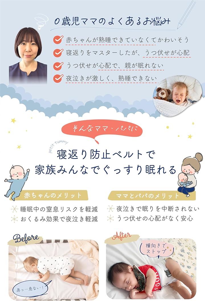 睡眠指導士監修Sleep Belt 寝返り防止ベルト うつ伏せ防止 うつぶせ寝対策 簡単取り付け 洗濯OK 赤ちゃん ベビー 綿100% 出産祝い おくるみ