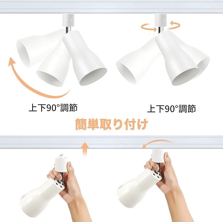Pispoer ダクトレール用 レールライト ライティングバー用 ダクトレール照明 天井照明 間接照明 LED電球60W形付き E26 電球色 ホワイト 角度調節 |