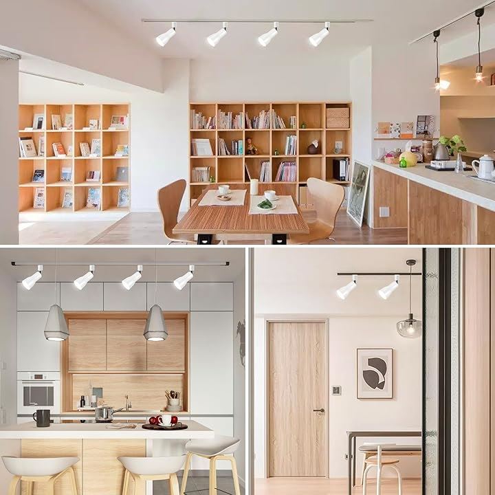 Pispoer ダクトレール用 レールライト ライティングバー用 ダクトレール照明 天井照明 間接照明 LED電球60W形付き E26 電球色 ホワイト 角度調節 (4個セット) |