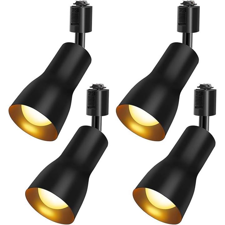 Pispoer ダクトレール用 レールライト ライティングバー用 ダクトレール照明 天井照明 間接照明 LED電球60W形付き E26 電球色 ブラック 角度調節 (4個セット) |