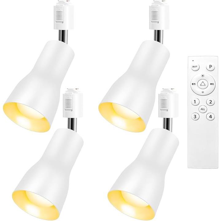 Pispoer ダクトレール用 レールライト ライティングバー用 ダクトレール照明 天井照明 間接照明 LED電球60W形付き E26 調光調色 消費電力8W ホワイト 角度調節 (4個セット) |