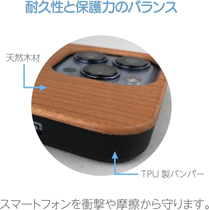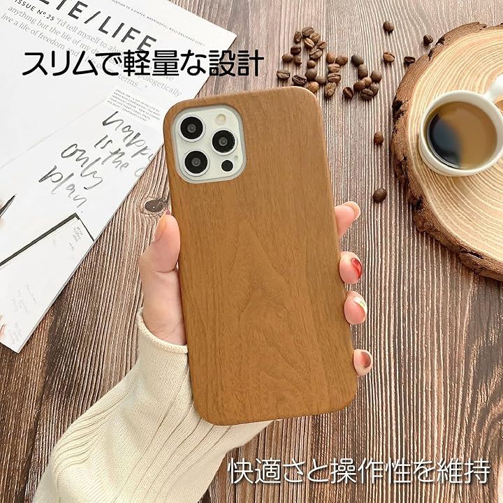 「スリムで軽量な設計」 木製ケースは通常、厚みがあるものが多いですが、このケースは薄型で軽量に設計されています。