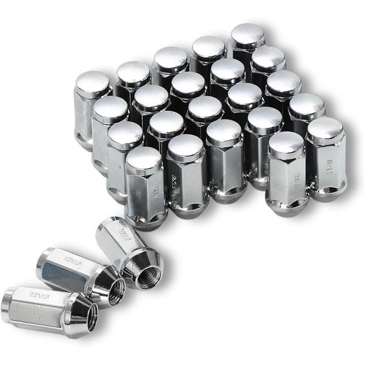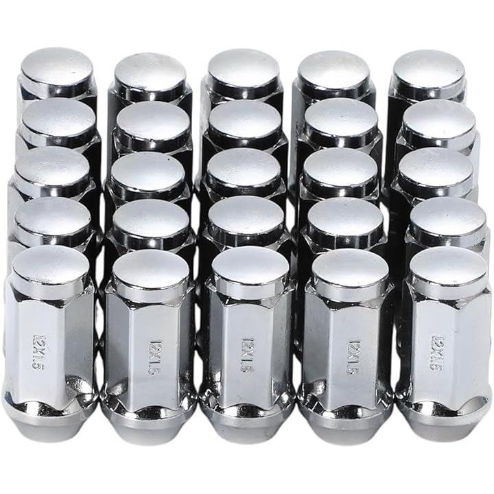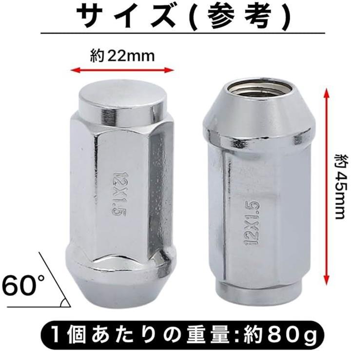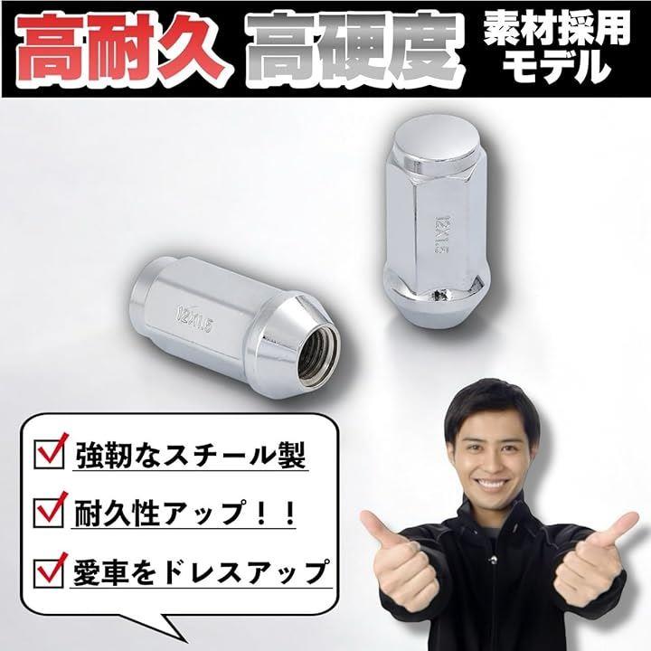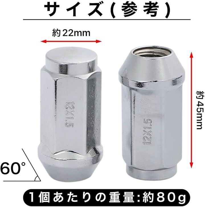 互換品 M12xP1.5 ロング ホイールナット スチール 19HEX 45mm 60° 24個 + 1個 計25個 トヨタ 三菱 ホンダ マツダ ダイハツ いすず フォード レクサス ハイエース サーフ ランドクルーザー ランクル 等 クローム メッキ 6穴 銀