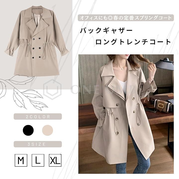 ロングトレンチコート レディース スプリングコート アウター ジャケット 春秋 ロングコート カーキ リクルート