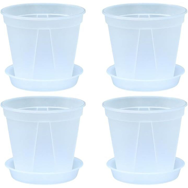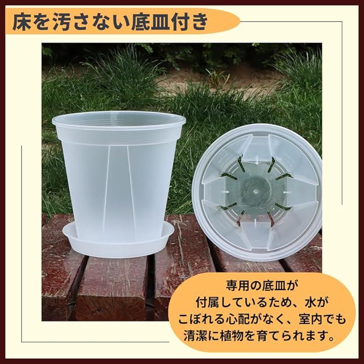 植木鉢 透明 プラスチック スリット 底皿付き 4個セット