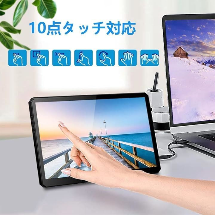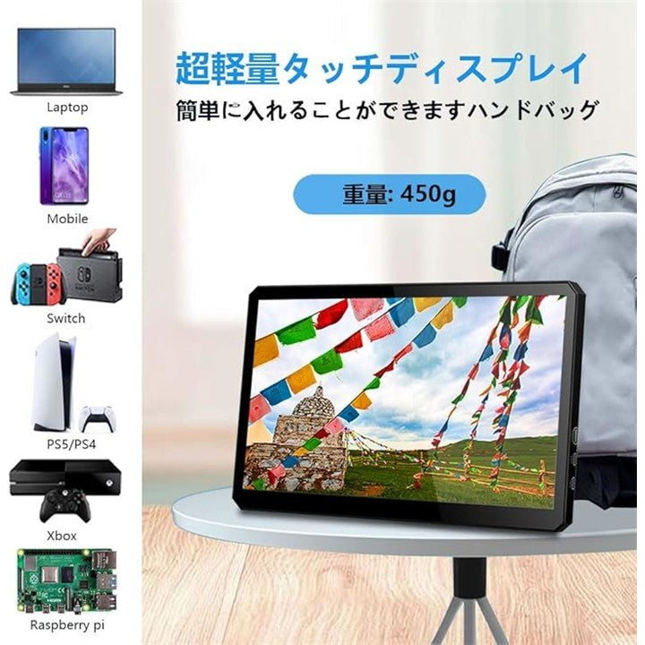 モバイルモニター タッチ 10.8インチFHD 1920x1080 小型モニター IPS 画面 100% Srgb 400Nits辉度 スピーカー内蔵 自立型 Raspberry Pi 5ミニPC・ノートPC用モバイルディスプレイ