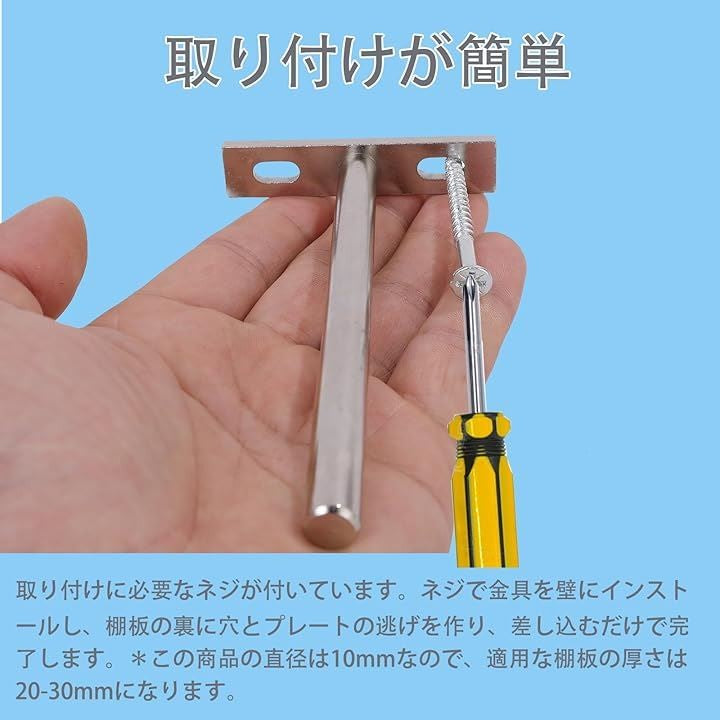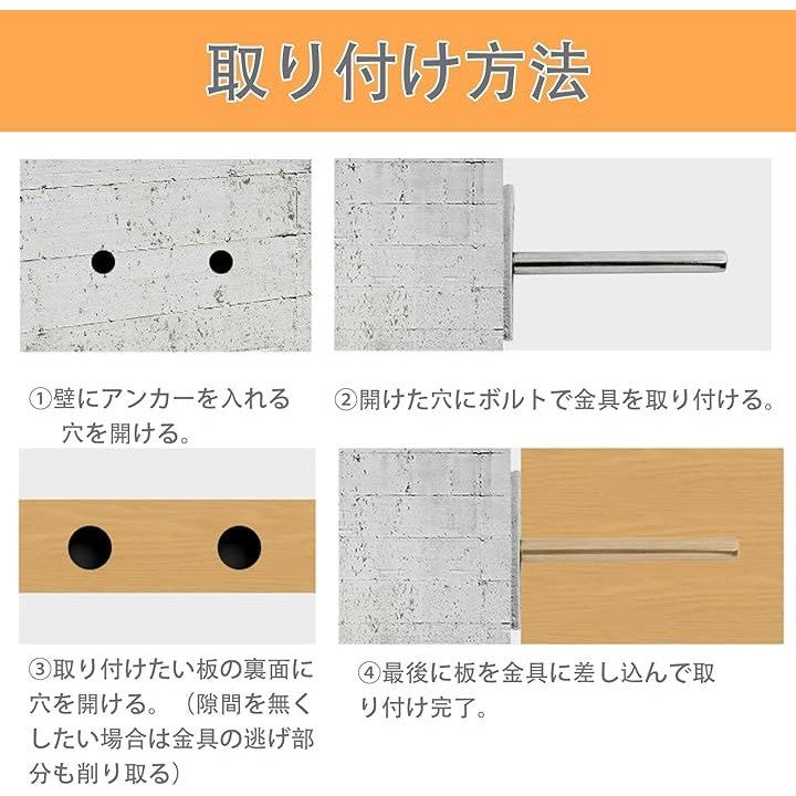 10個入り ドリルガイドキット付 70mm x 125mm ブラケット 金具 棚受け フローティング 隠し 差し込みタイプ シルバー