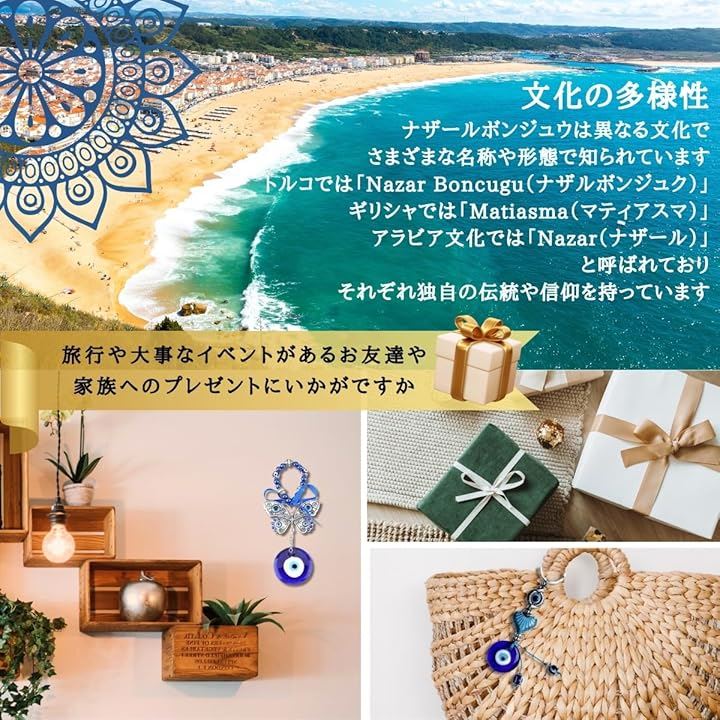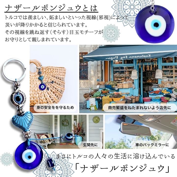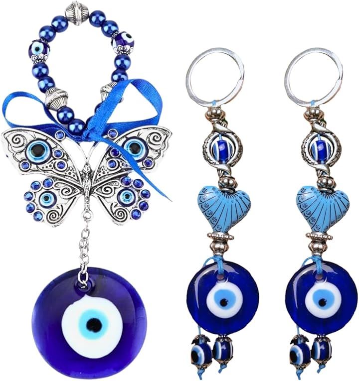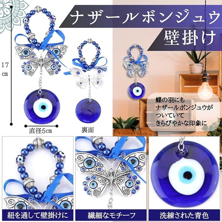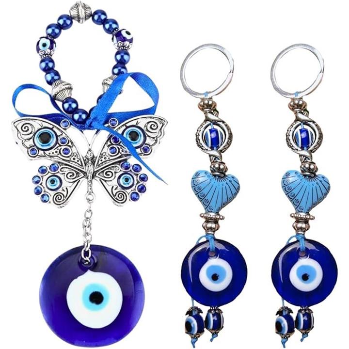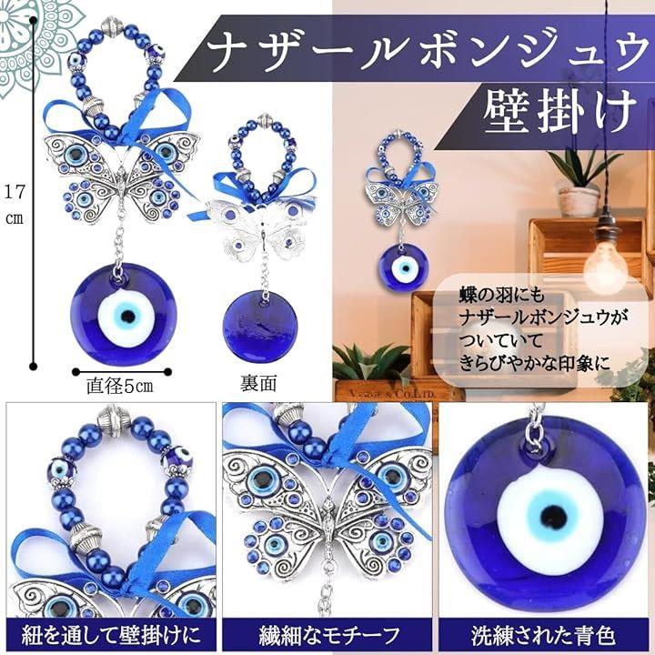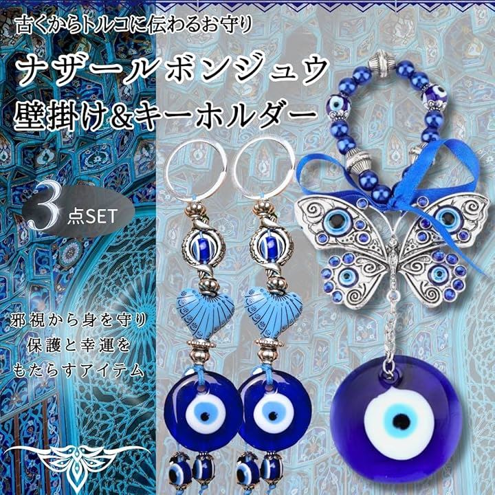 ナザールボンジュウ トルコ 壁掛け キーホルダー 蝶 お守り 3点セット