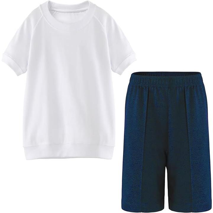 「体操服セット」小学生から中学生までの子供たちに最適な半袖トップスとクォーターパンツの組み合わせで、男女どちらにもフィットするデザインです。