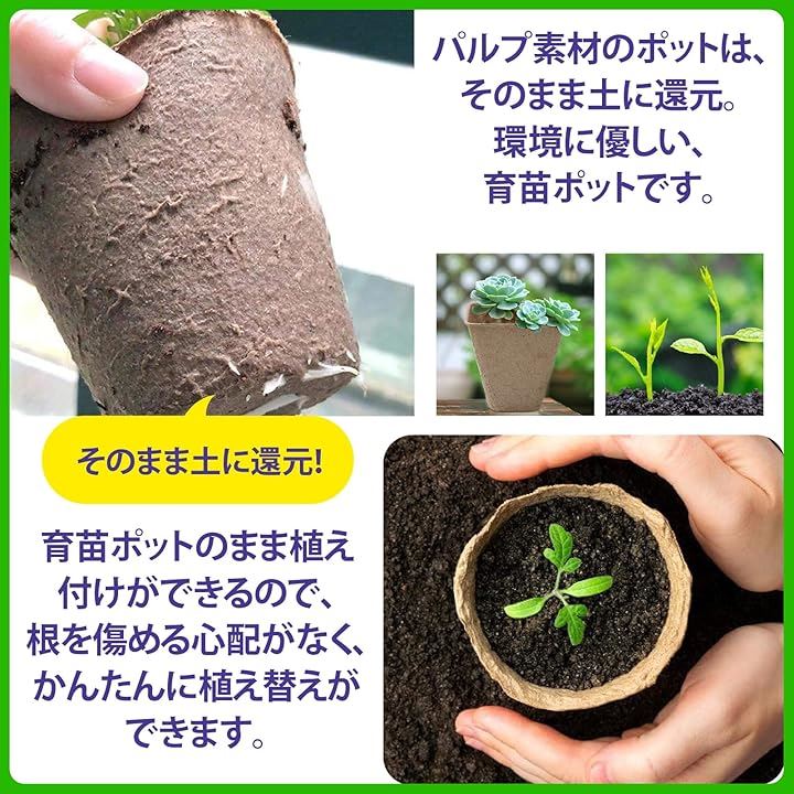 育苗ポット 紙植木鉢 紙パルプ 分解性 園芸用品 種まき 家庭菜園 ガーデニング