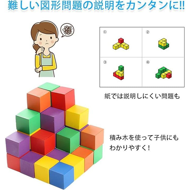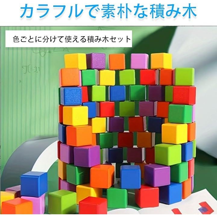 積み木 立方体 木製 キューブ 積み木箱 算数ブロック 色付き カラフル 小さい 100個 セット