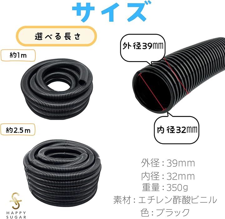 集塵ホース ダクトホース ジャバラ 蛇腹 燃料 排水 掃除機 2.5m 内径32mm 外径39mm