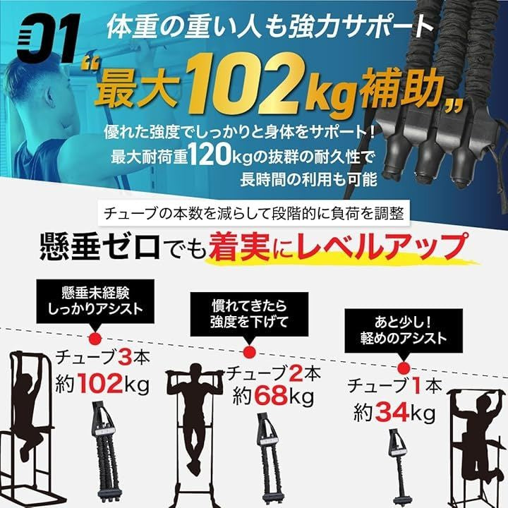 懸垂 アシスト チューブ 3段階調節 初心者 女性向け チンニング 補助バンド 懸垂バー対応
