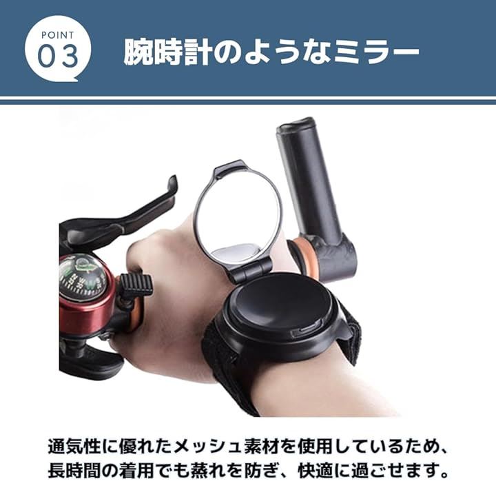 自転車 アームミラー ロードバイク バックミラー サイド 補佐 凸面鏡 手首装着