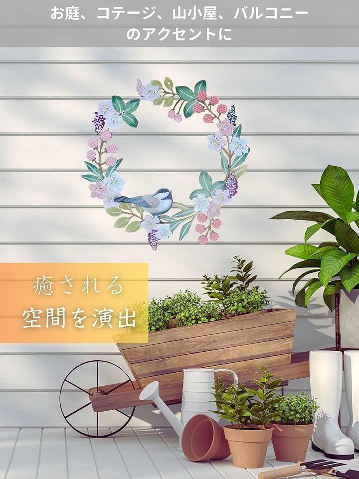 玄関 リース ガーデン 壁掛け インテリア オブジェ ウォールフラワー アイアン ワイヤー 飾り