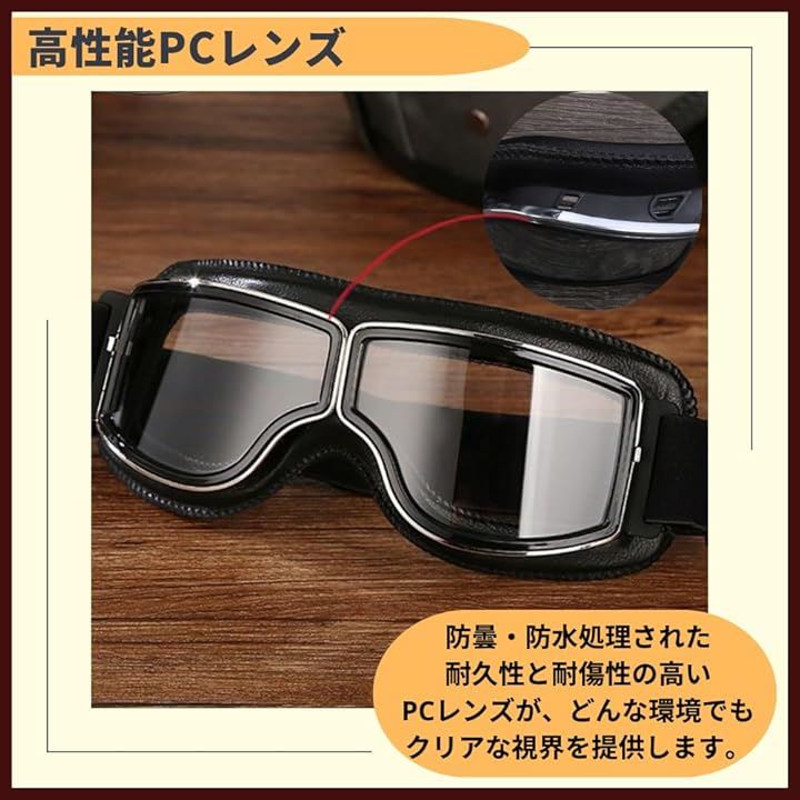 ゴーグル バイク オートバイゴーグル シールド 保護メガネ アウトドア スポーツ ブラックレザー