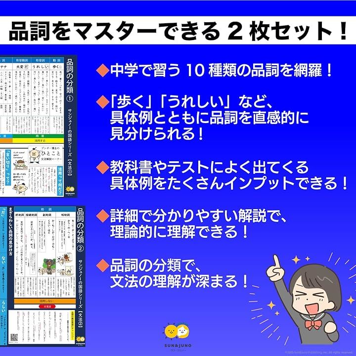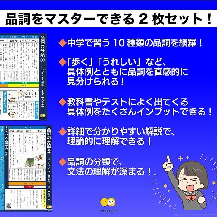 サンジュノーの国語シリーズ 中学国語の文法 品詞の分類 1 2 2枚セット
