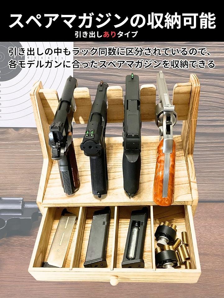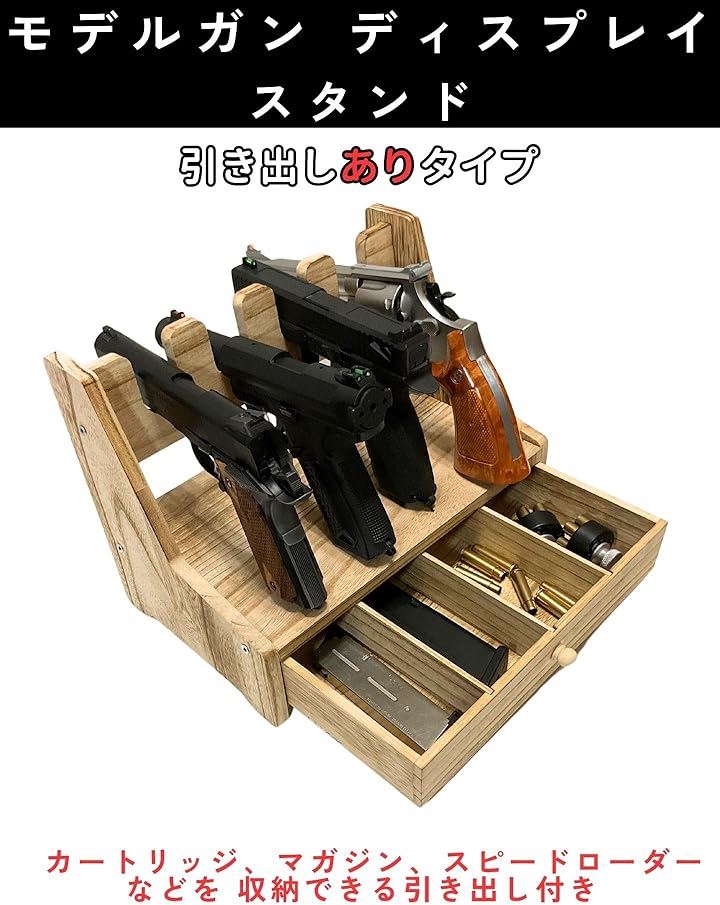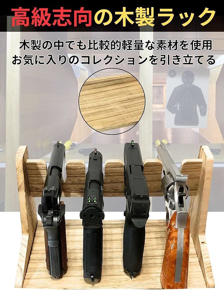 ハンドガン ラック スタンド ディスプレイ 木製 軽量 モデルガン 拳銃 ガスガン ホルスター 収納