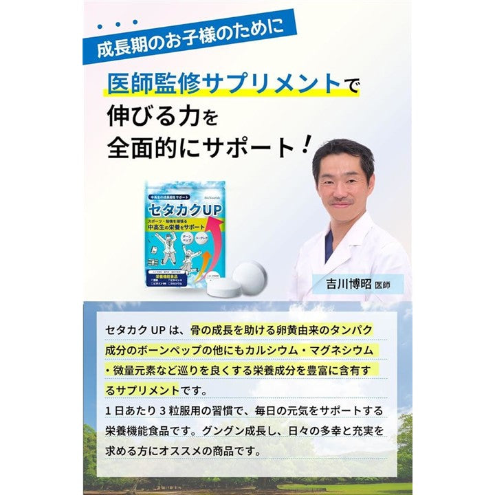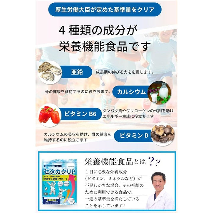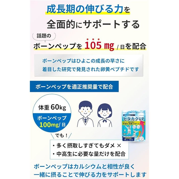 ボーンペップxユーグレナx4種の栄養で中高生の伸びる力をサポート セタカクUP 医師監修x製薬会社と共同開発 カルシウム 成長 身長 サプリ 93粒 31日分 栄養機能食品 ビタミンB6・ビタミンD・カルシウム・亜鉛