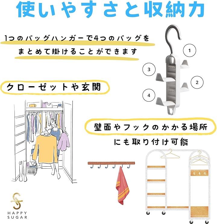 バッグハンガー リュックハンガー カバン 収納 鞄 リュック掛け 鞄掛け カバン置き クローゼット 壁 2個セット