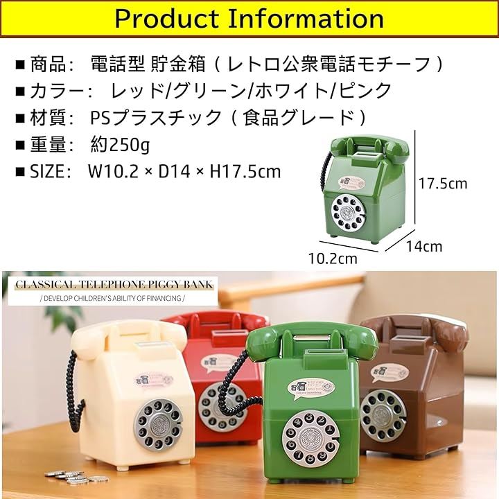 貯金箱 500円玉 可愛い 電話 おもしろ 小銭 お札 おもちゃ 子供 レトロ おしゃれ 雑貨