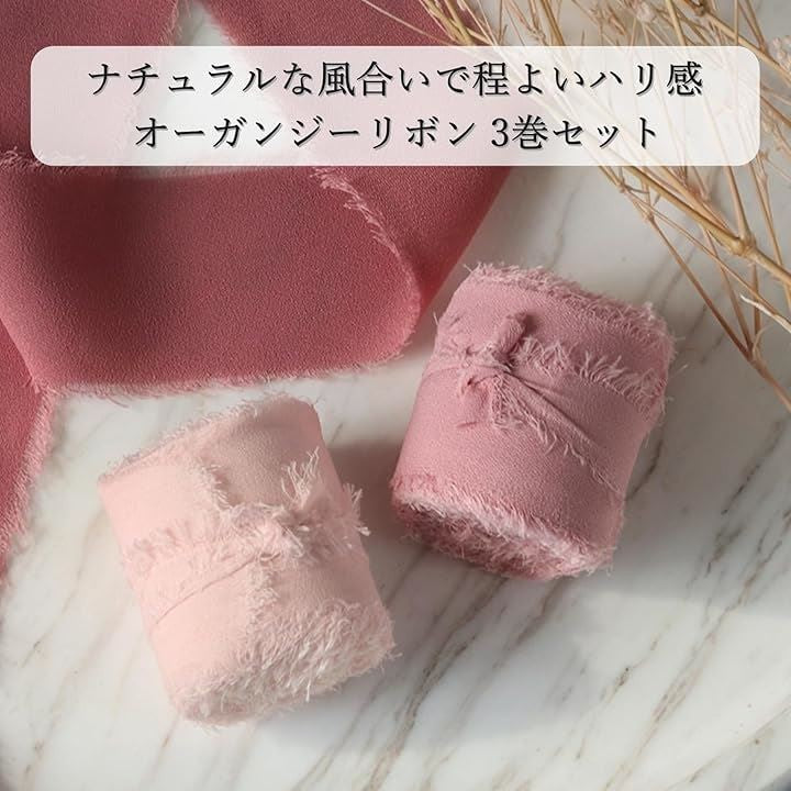 オーガンジーリボン フレッジリボン 幅40mm ヘアアクセ ギフト 花束 ラッピング 3巻セット
