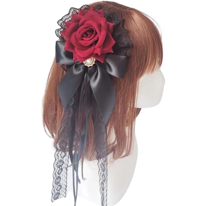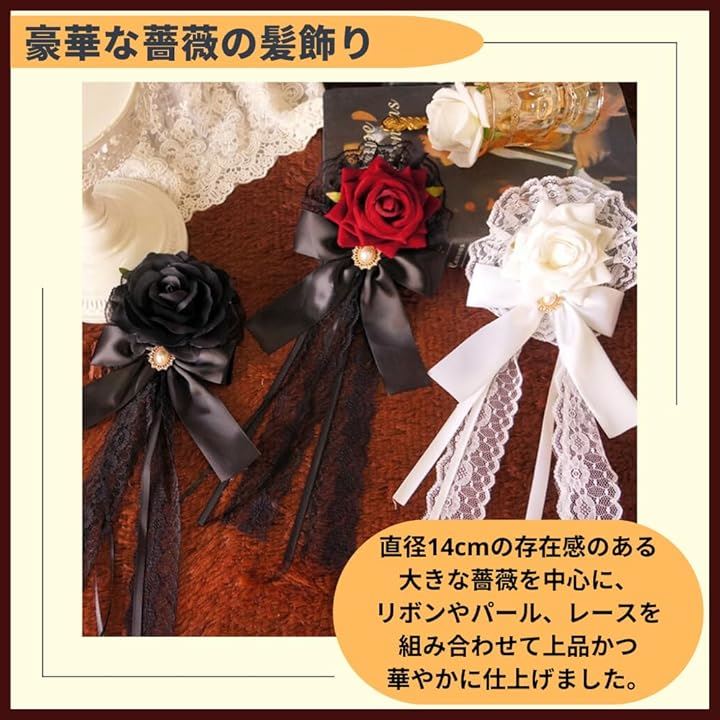 ヘッドドレス ロリータ ゴスロリ 薔薇 バラ ヘアアクセサリー 髪飾り クリップ