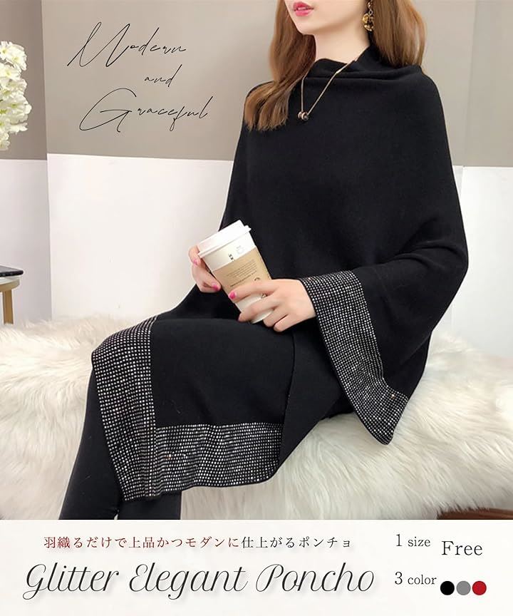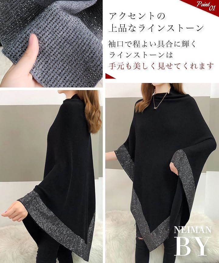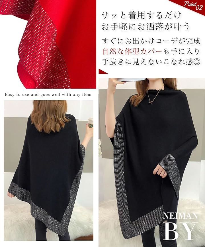 ポンチョ キラキラ ラインストーン付き 上品 ショール ケープ マント おしゃれ 可愛い ビター 韓国風 モード 個性的