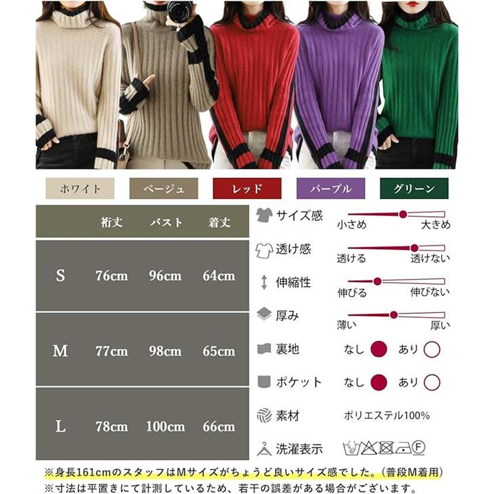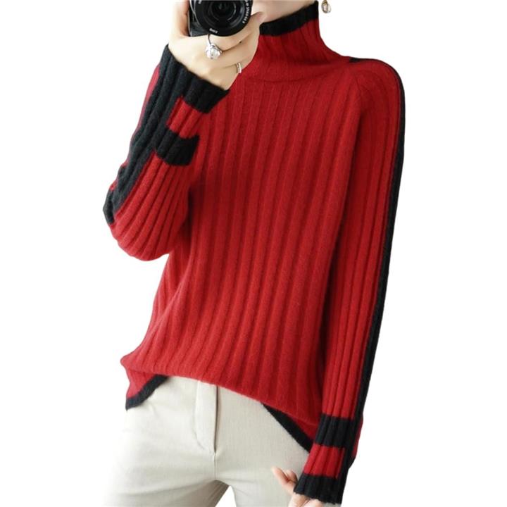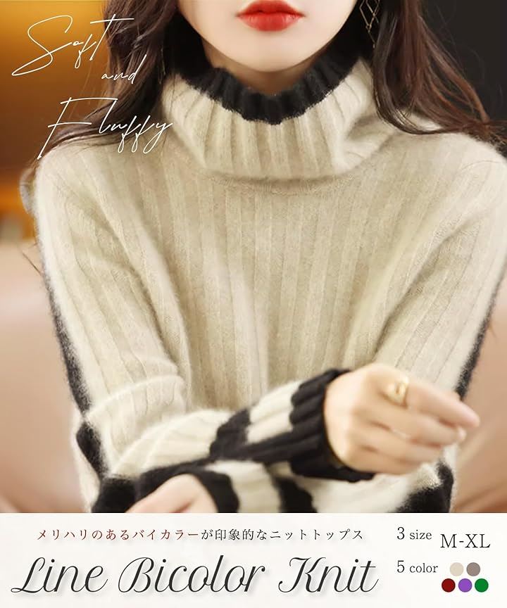 [ニーマンバイ] 配色 ニット ライン リブニット タートル セーター あったか プルオーバー 秋冬 レディース ゆったりニット 4A-N20-RDXL |