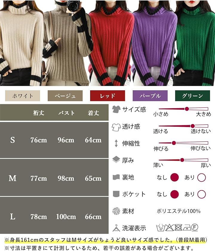 首元をしっかりと覆うタートルネックが冷えを防ぎ、秋冬シーズンに最適な防寒アイテムです。