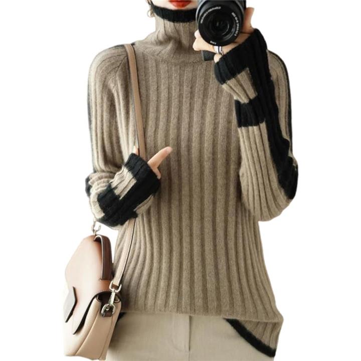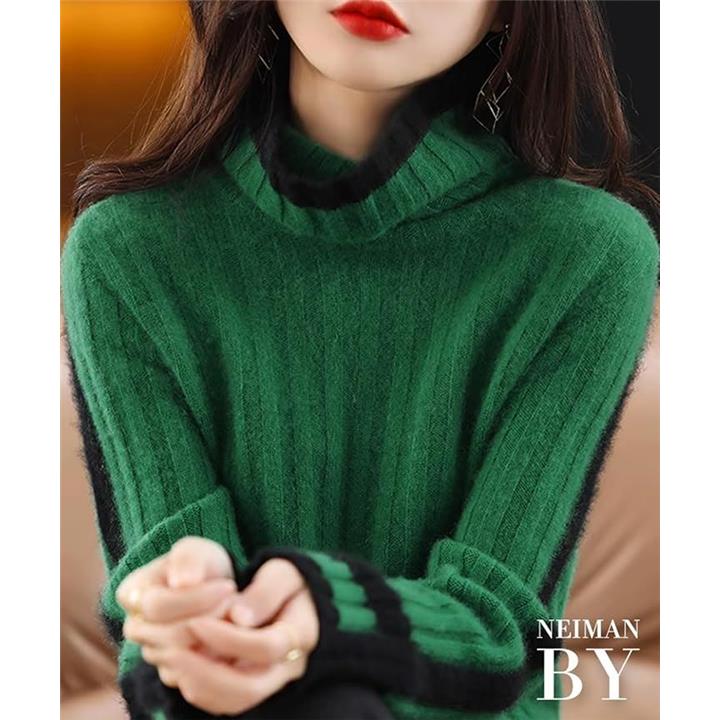 [ニーマンバイ] 配色 ニット ライン リブニット タートル セーター あったか プルオーバー 秋冬 レディース ゆったりニット 4A-N20-GRL |