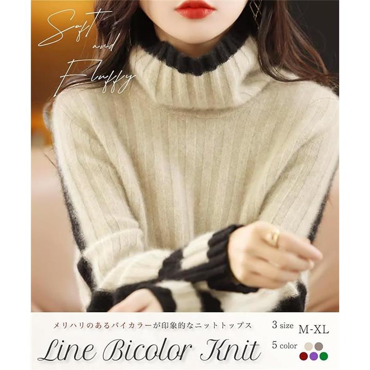 [ニーマンバイ] 配色 ニット ライン リブニット タートル セーター あったか プルオーバー 秋冬 レディース ゆったりニット 4A-N20-BEXL |
