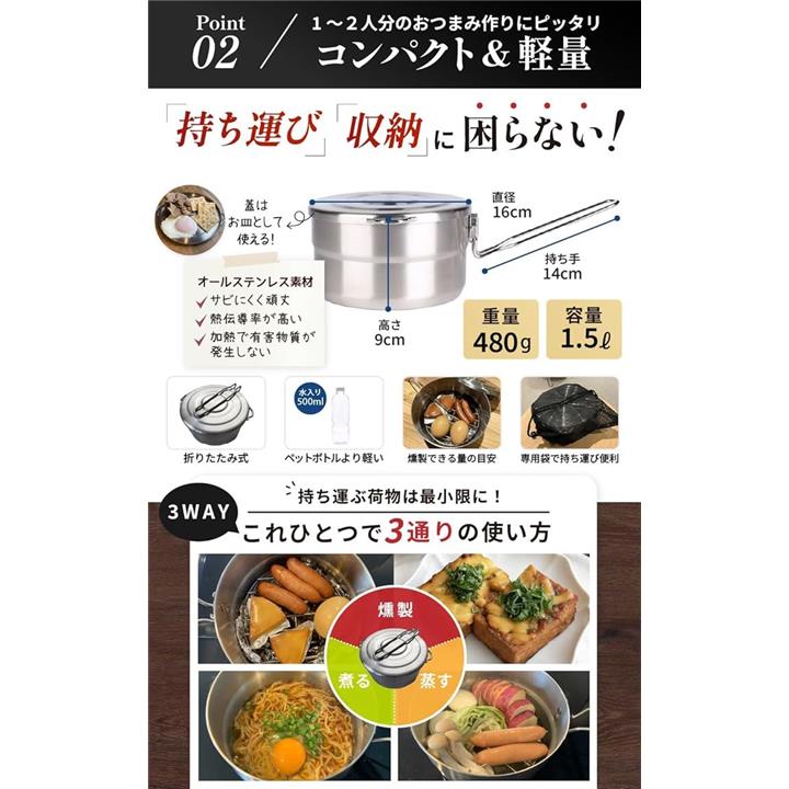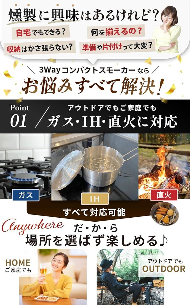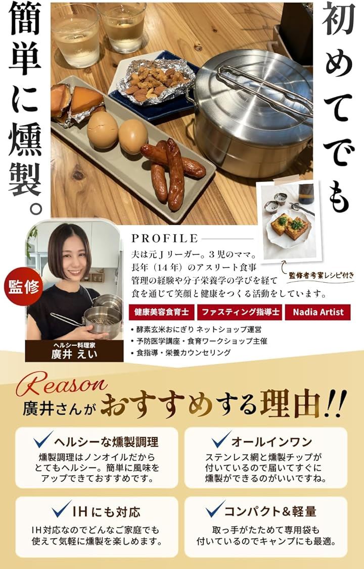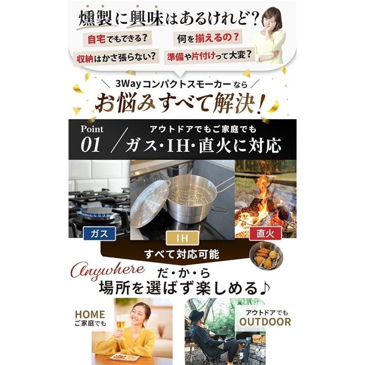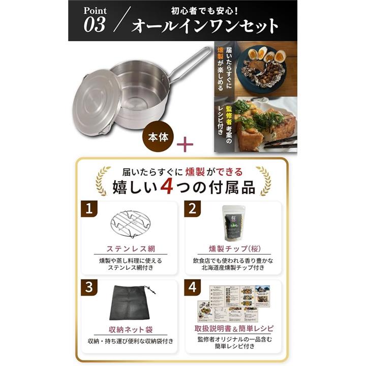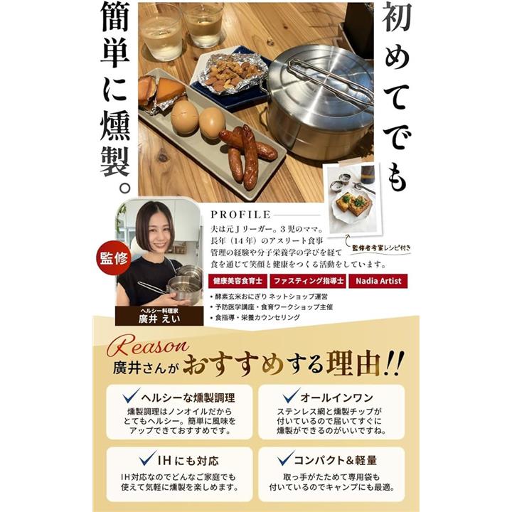 燻製器 家庭用 キャンプ ヘルシー料理家監修スモーカー IH対応 煙が漏れにくい 桜 スモークチップ 付き