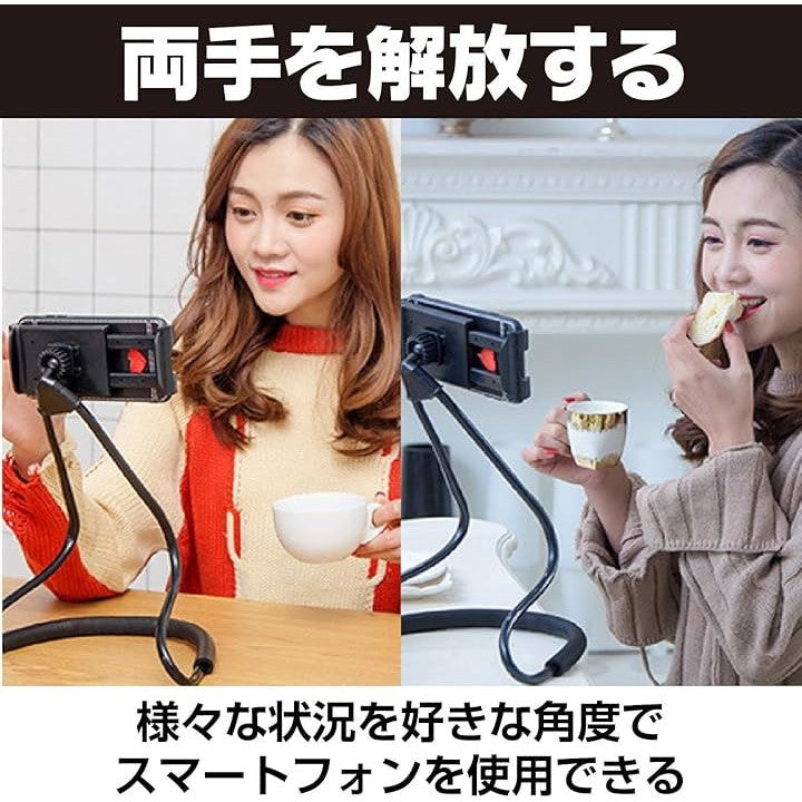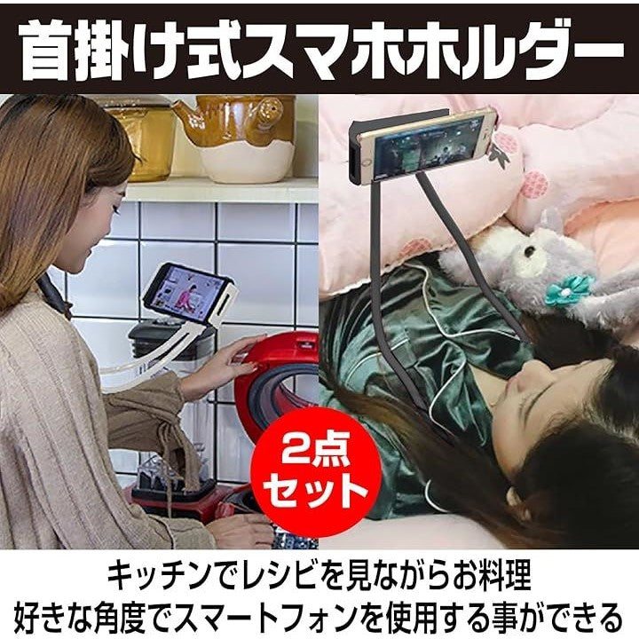 互換品 首掛け式 スマホホルダー 2個セット スマホ首掛け 携帯 スタンド ハンズフリー 寝ながら 自撮り 配信 多機能