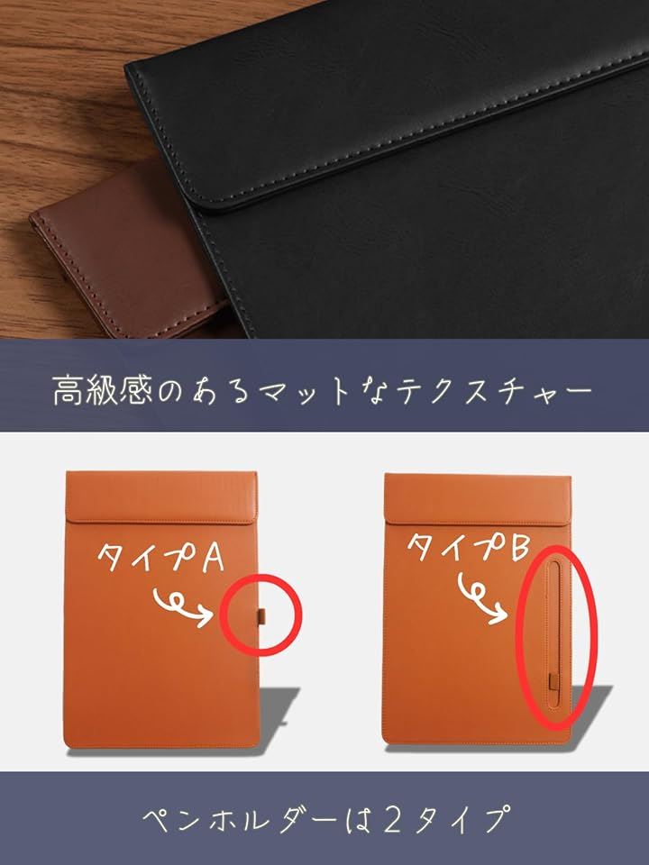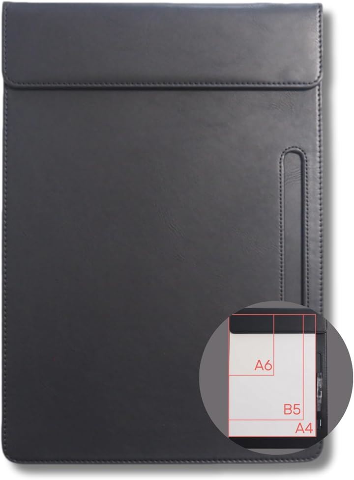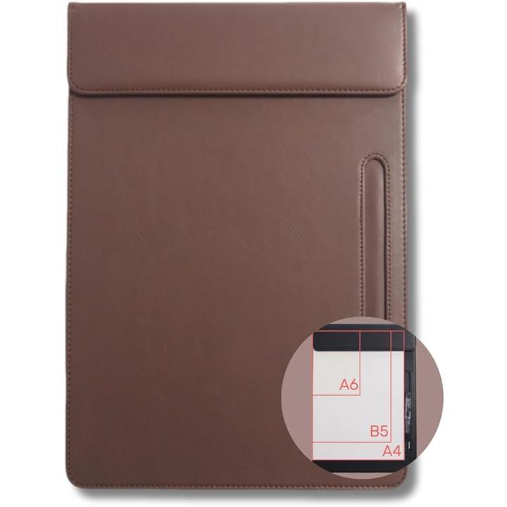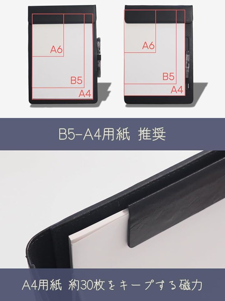 A4サイズに対応し、PUレザーの高級感とマグネット式クリップの便利さ、大容量の収納力を持っています。